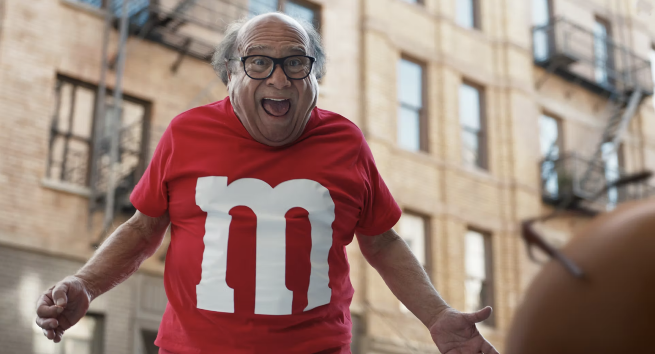 For many years, M&M's commercials ended with the red M&M rising up through a pool of liquid chocolate. This time, DeVito took the place of the red M&M to tease the brand's return to the Super Bowl.